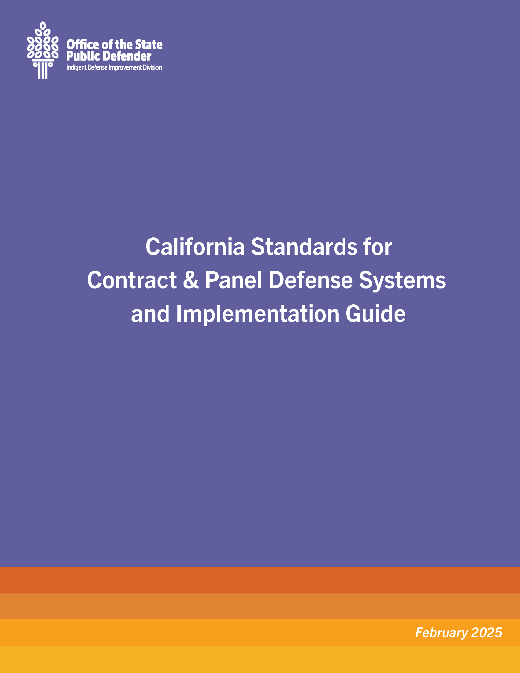 In February 2025, OSPD released California Standards for Contract and Panel Defense Systems, a set of statewide principles developed through an 18-month research and collaboration project beginning with a live event, California Indigent Defense Summit. These guidelines combine national best practices with input from panel, contract, and county leaders across California and are designed to ensure quality representation, strengthen accountability, and help counties align with constitutional and ethical obligations. The implementation guide was concurrently released to provide county administrators and panel leaders with practical advice and best practices from across the country.